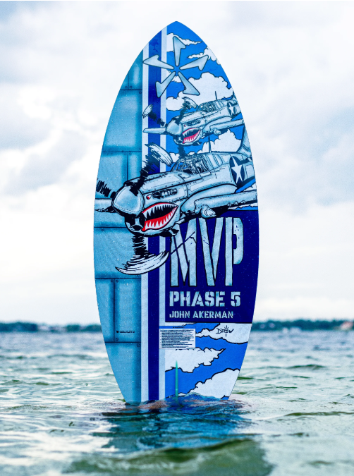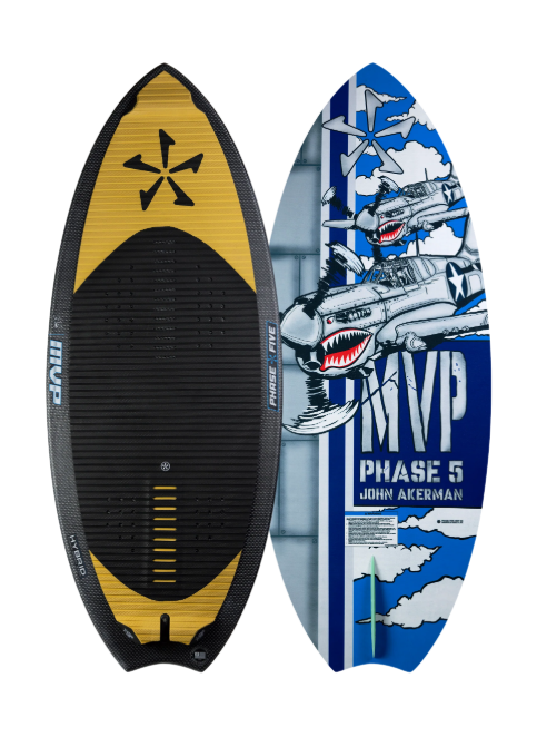 Supporting aggressive skim style riding, the Phase Five MVP Wakesurfer harnesses unique features that makes it stand out! First you will notice a full deck Techno Traction V2 EVA grip setup with nose kick tail support for superior foot control. John’s idea for a kick tail in the nose was to gain more leverage to execute tricks while riding revert. The MVP design was also changed for 2025 to feature a full ⅝” core.